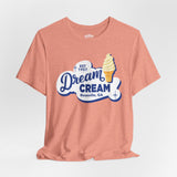 Our DREAM CREAM Unisex T-shirt design is part of The Rossville Collection—a heartfelt tribute to the beloved landmarks and cherished memories of old school Rossville, GA. Each T-shirt in this locally designed collection captures the essence of favorite old-time places, iconic local commercials, and nostalgic town nicknames. Whether you're reminiscing about the charm of Rossville's past or celebrating the vibrant history of the community, the Rossville Collection is sure to bring back great memories and a sense of hometown pride.