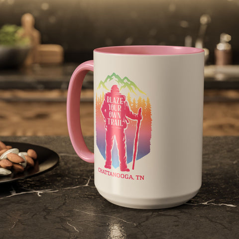 Sip in Style! The sleek and timeless design of our BLAZE YOUR OWN TRAIL PINK 11oz or 15oz Ceramic Mugs are the perfect blend of style and functionality. The daily essential is ideal for enjoying your favorite hot beverages, whether it's strong morning coffee or a soothing herbal tea. Add a touch of elegance to your coffee break, suitable for both home and office use.
